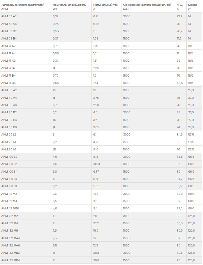 Электродвигатели АИМ изготавливаются на номинальное напряжение 380В или 220В частотой 50Гц, с тремя выводными концами, со схемой соединения обмотки статора "звезда" или "треугольник".