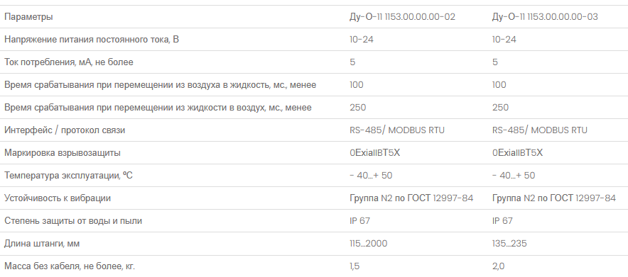 Датчики соответствуют требованиям стандартов взрывозащиты и пригодны для использования в системах защиты от переполнения, с установкой, непосредственно, во взрывоопасных зонах. Датчики имеют цифровой интерфейс RS485 и могут быть использованы в составе сети подобных устройств.